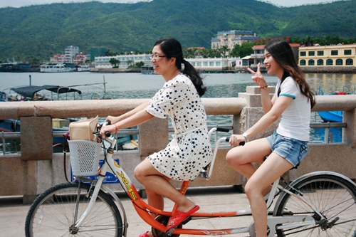 初夏5月,炽热阳光被厚厚云层遮挡,海滨凉风习习,绿道两旁花香四溢、绿草茵茵。大家一边欣赏美丽海景慢慢骑行,一边呼吸着自然清新的空气,吹着咸咸的海风,聊天说笑。