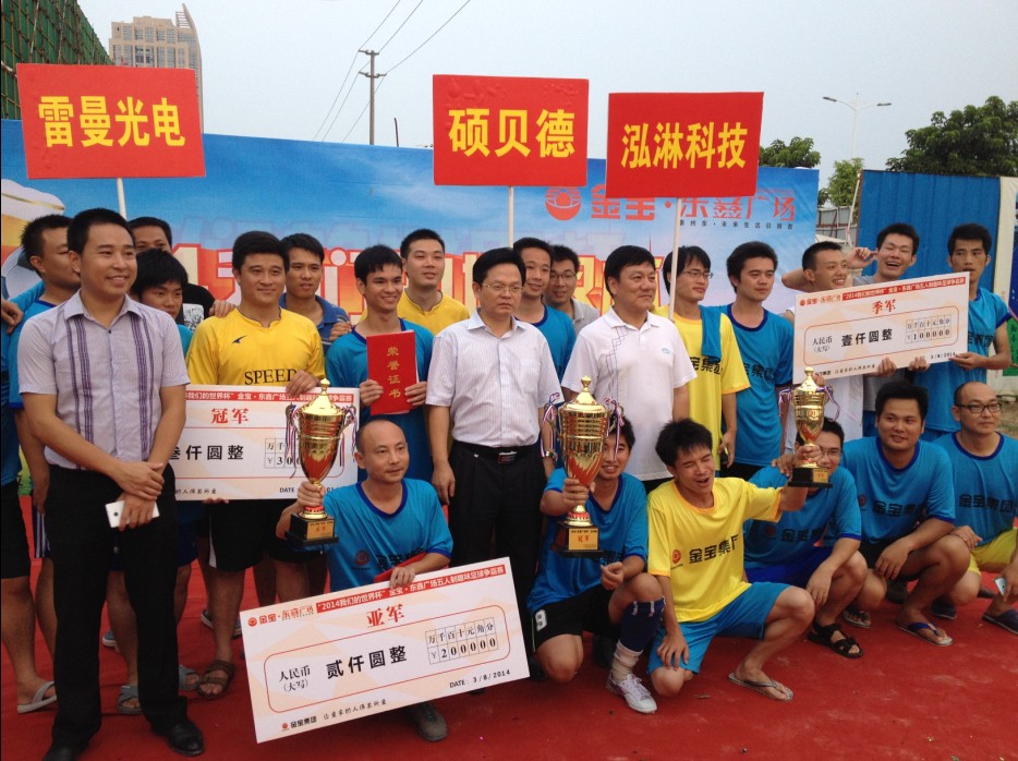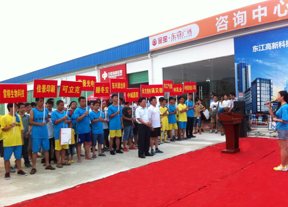 据了解,本次“金宝·东鑫广场杯趣味足球争霸赛”由惠州市仲恺高新区东江高新科技产业园管理委员会主办,广东金宝集团有限公司全程赞助支持,金宝·东鑫广场项目冠名赞助。比赛采用“五人制”并以趣味性为主的方式进行,由高新区的20支企业球队参与。