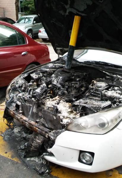 当天清晨6:30左右,江畔花园护管队员刘伦造在小区外围巡逻至老区二栋附近时,突然发现不远处一股浓烟直冒。“老区二栋旁有车起火了”!刘论造立即用对讲机将情况报告护管班长林木迎。林木迎闻讯火速骑车赶到现场,只见一辆私家车正被熊熊大火吞噬,火苗高达2米,情况十分危急。冒着车辆随时可能爆炸的危险,林木迎果断指挥队员高广文、焦忠一等一起打开灭火器,短短几分钟就用完8个灭火器,终将大火扑灭。所幸此次火灾发现及时,扑救迅速,若稍有迟缓火势蔓延就可能发生大爆炸,危及周边群众生命财产安全,后果不堪设想。