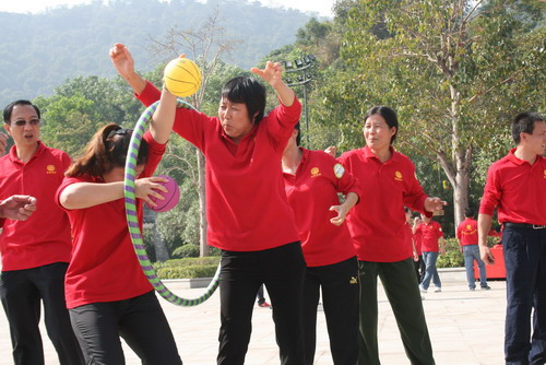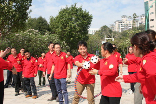 紧接着,大家还参加了三人四足、手拉手钻呼啦圈两个趣味游戏。最后,肖总裁、杨文利副总裁、王挚皋副总裁、周江波副总裁分别为综合得分较高的第一名中银代表队,第二名江畔花园队,第三名城市佳园队颁发奖金。总部1队获评精神风貌奖,曲总为其颁发了奖金。