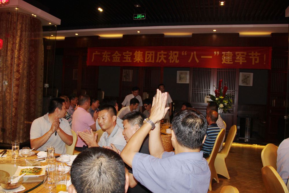 8月2日,金宝集团退伍军人50余人欢聚一堂共庆“八一”,董事长庄恭钦、总裁肖宇平、党支部书记曲文东、总裁办主任林晓琳莅临现场并讲话,一方面对退伍军人致以节日的问候,另一方面也对他们在工作中的敬业奉献和忠诚服务表示感谢。随后,肖总代表公司向退伍军人们派发了节日礼金。